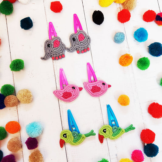 Elephant and Birdie Hair Clips
