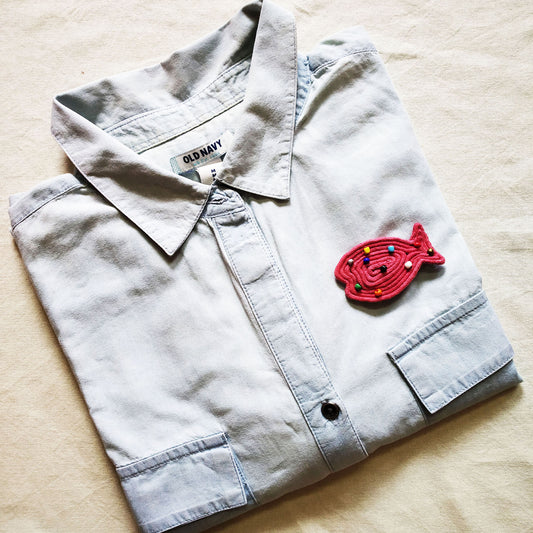 Red Beaded Fish Brooch