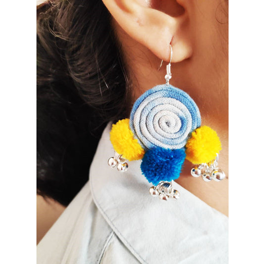 Shaded Blue Pompom Earrings