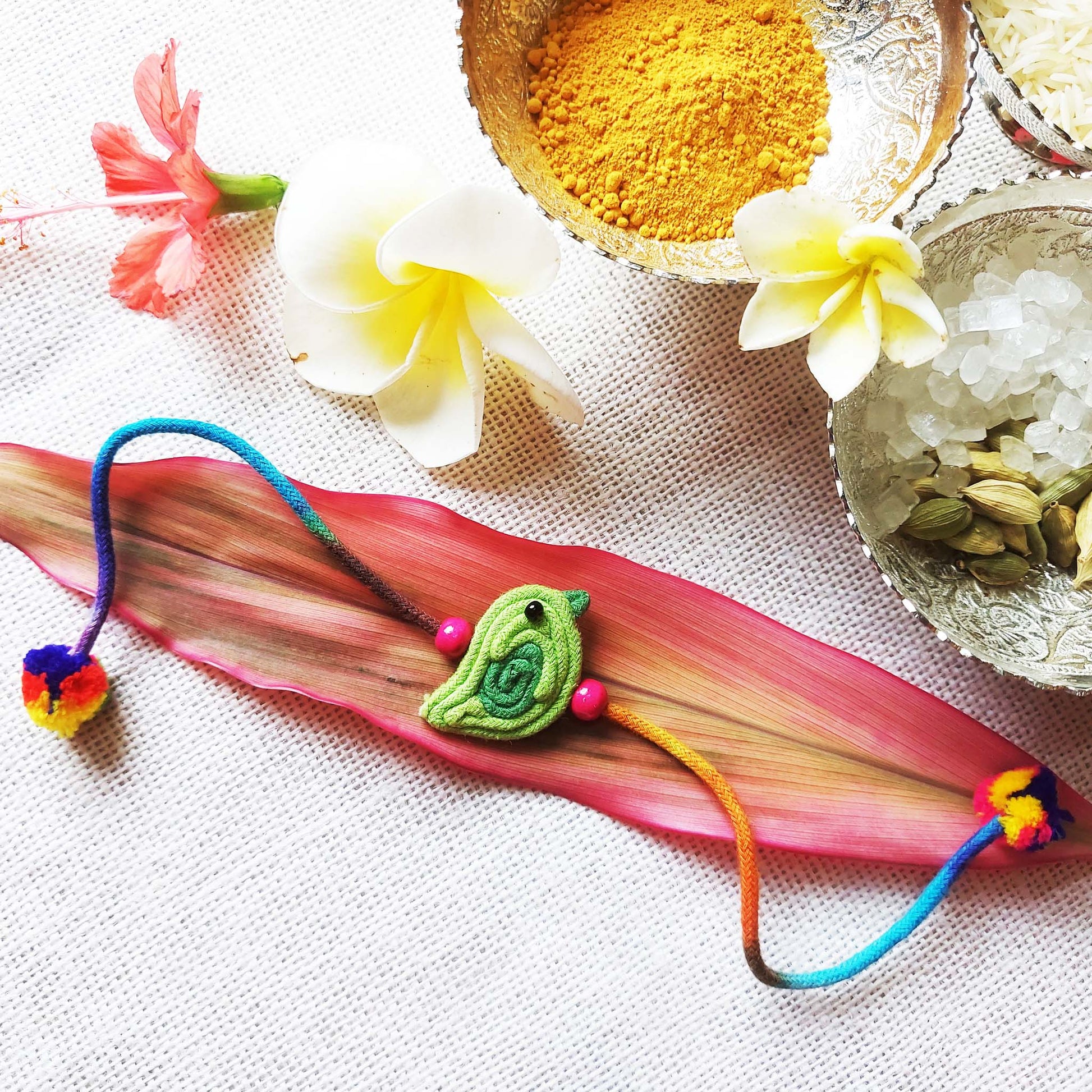 Handcrafted Bird Rakhi using Cotton Dori created for Kids