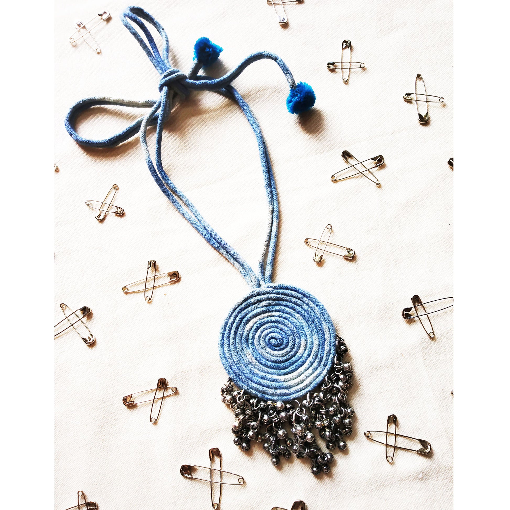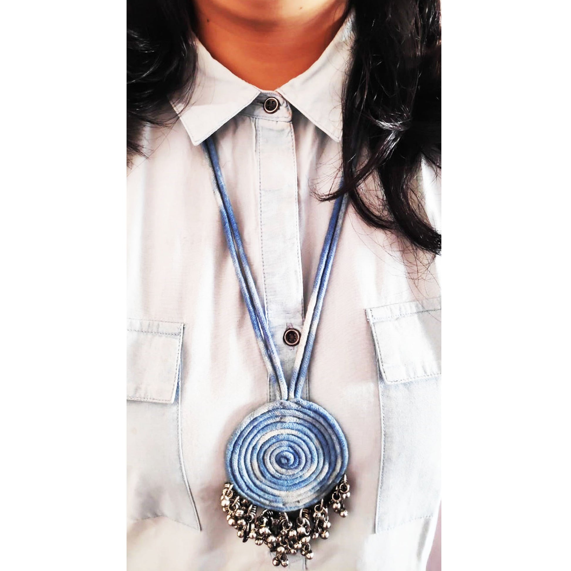 A colorful and unique piece to add to your accessories collection. This blue tie and dye necklace with layered ghungroos is the perfect accessory to make a statement. With its unique design, this necklace is a must-have for your jewelry box. Wear this necklace with everything from a formal gown to a simple tee and jeans.