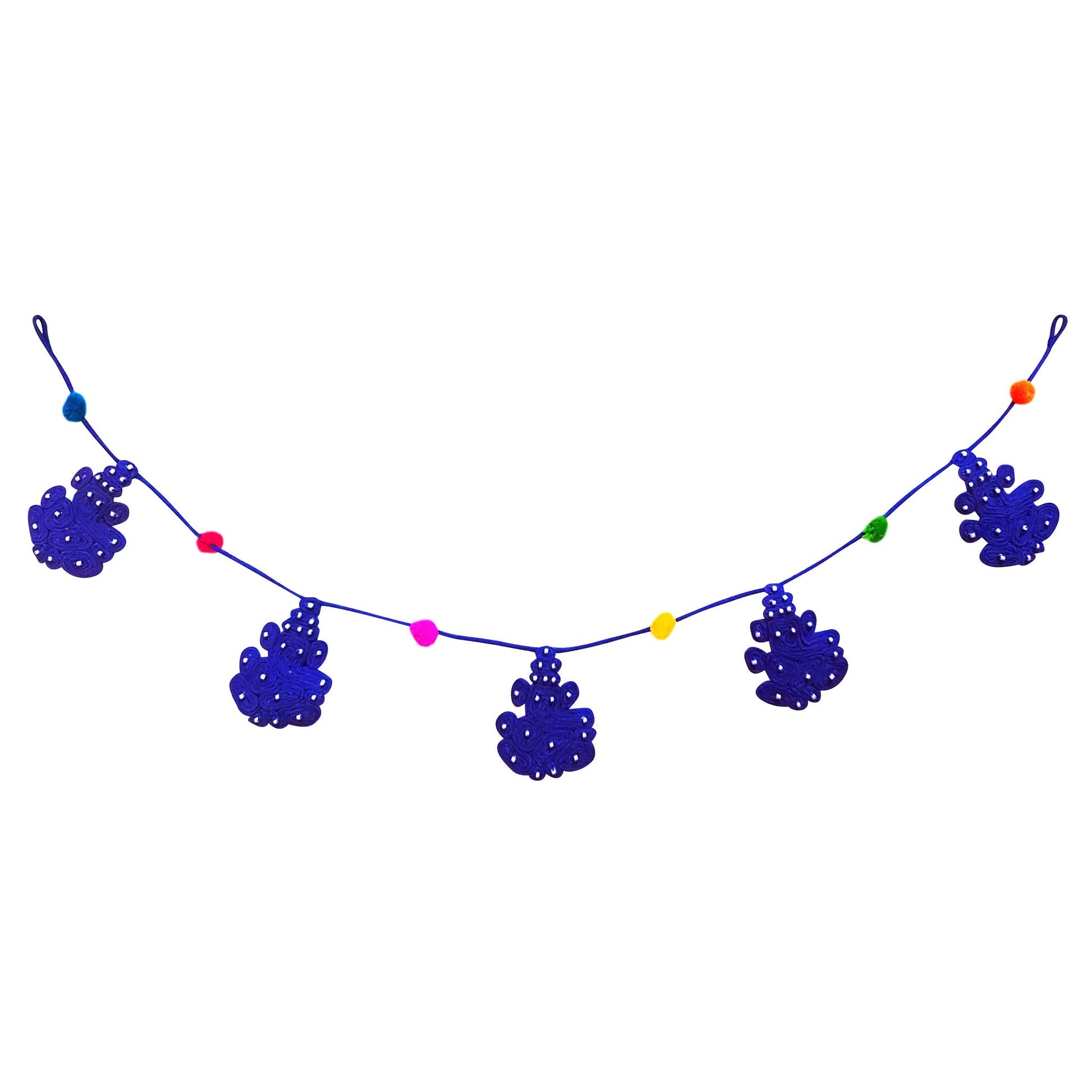 Bring the blessings of Lord Ganesha into your home with our Handcrafted Blue Ganesha Bunting. Each piece is crafted with intricate doriwork, featuring a detailed blue Ganesha design, backed with felt for added texture. The bunting is hand-stitched and adorned with loops on each side, as well as beads and pompoms, making it the perfect addition to any room or sacred space. Add a pop of color and spiritual charm to your home decor with this unique and handcrafted piece.