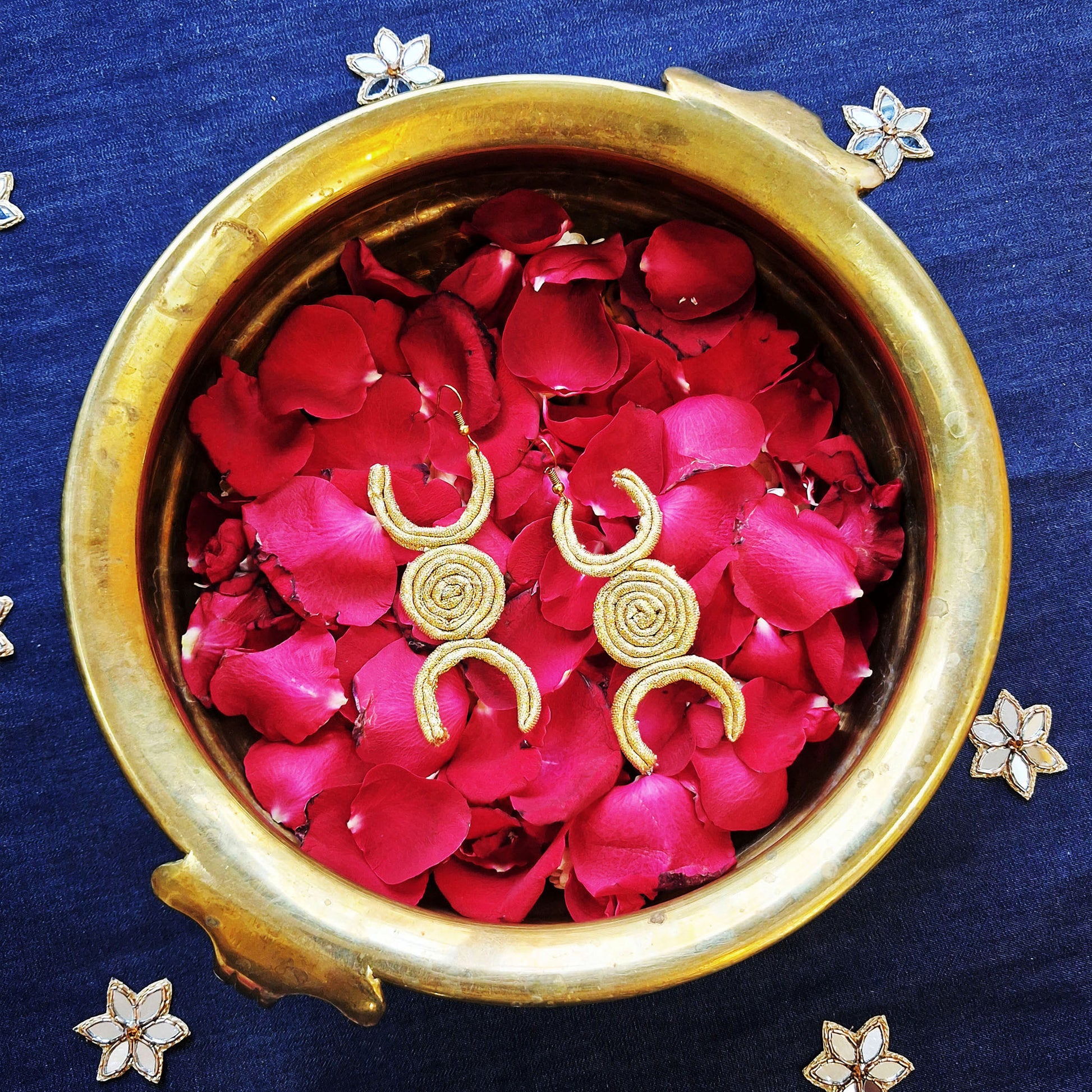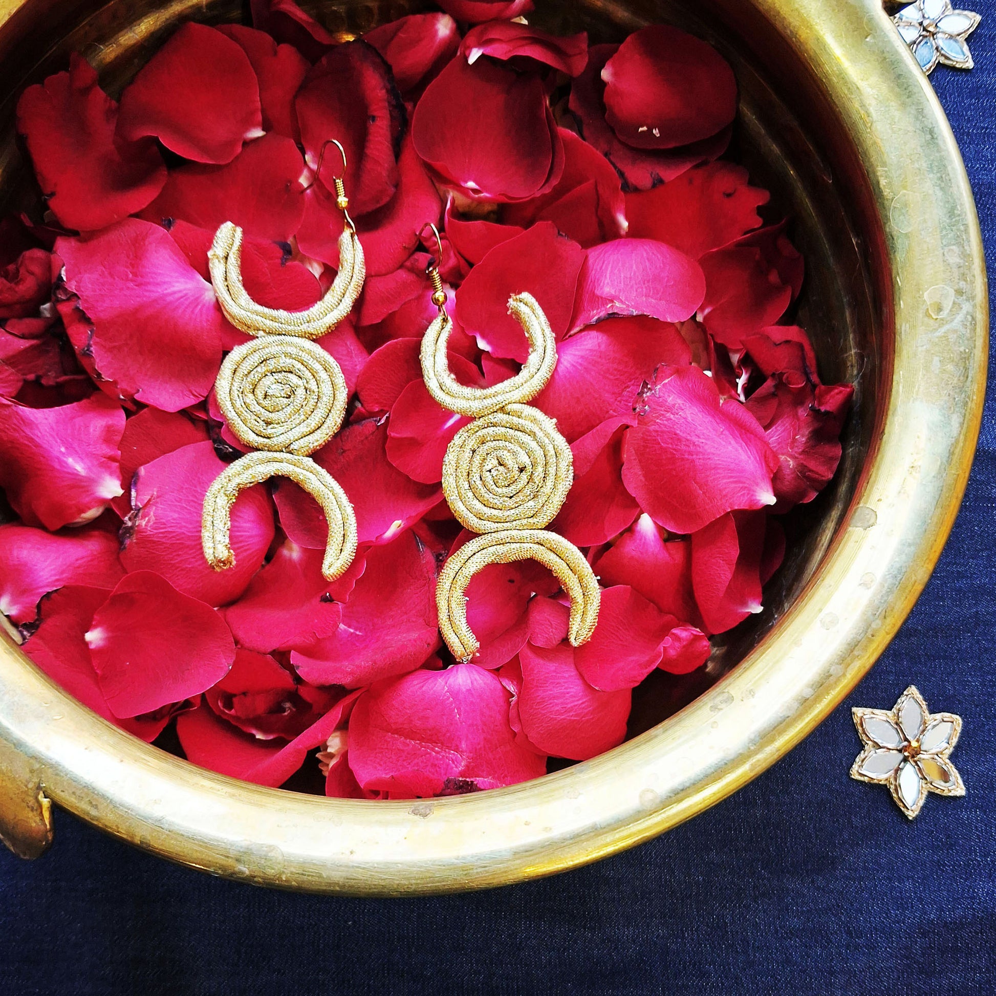 Handcrafted from Gold fabric, these danglers are special and can transport you into the beautiful night sky. These are perfect to flaunt at your festive ocassions and will turn heads wherever you go.