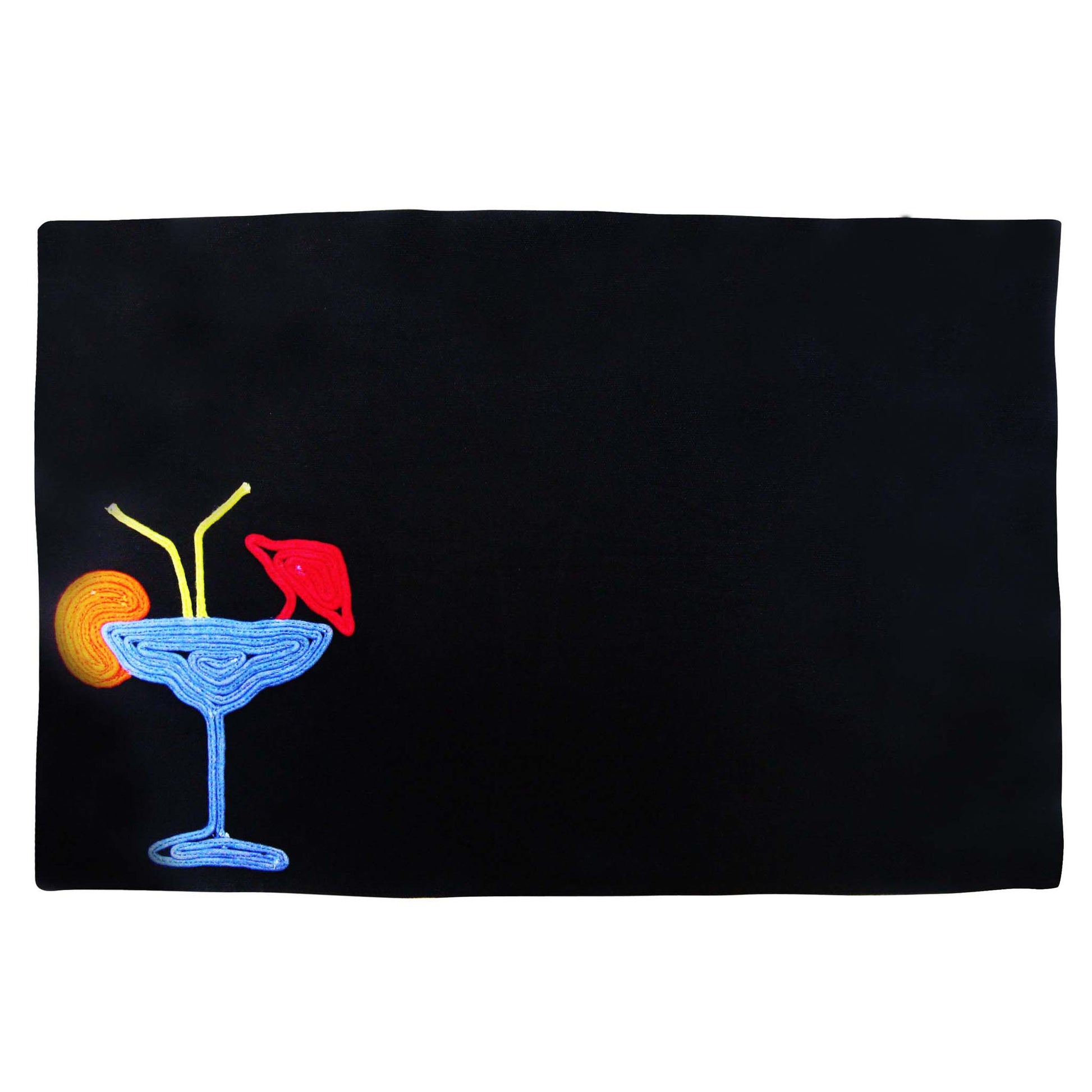 Liven up the dinner table and create some lively atmosphere with this black cotton canvas placemat with cocktail glass embroidery. Perfect for parties and gatherings, this placemat will make a stylish statement at your next event. Its unique design is eye-catching, and the back is lined with muslin cloth for durability. Bring fun and fashion to your next gathering with this one-of-a-kind cocktail placemat.
