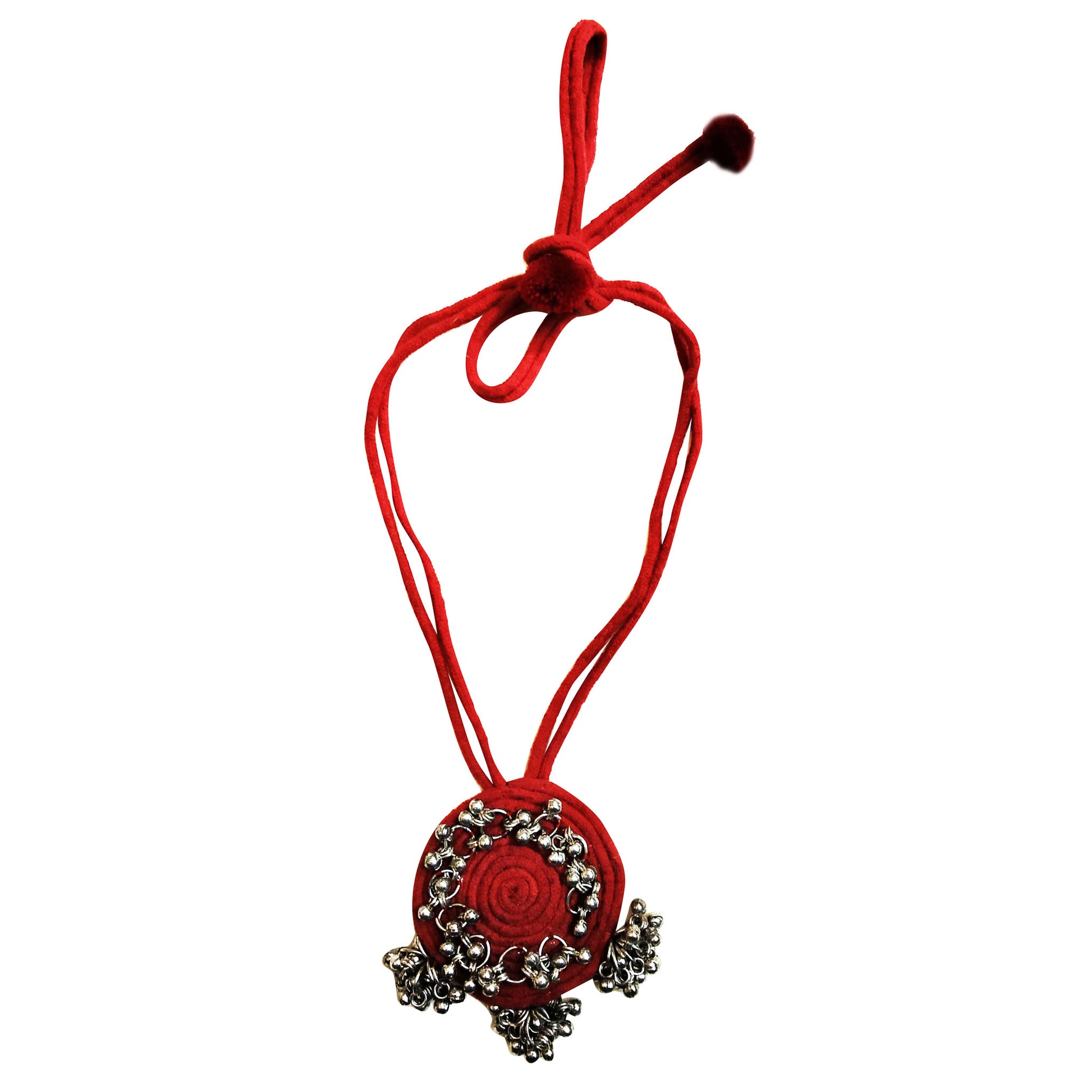 A touch of boho beauty. We love this earthy necklace for its bohemian vibe. With antique ghungroos, this piece is perfect for adding a touch of global flair to any outfit. The maroon cord gives it a rustic appeal, while the ghungroos add a touch of glamor. Wear it with a simple dress or tunic and let the necklace do all the talking.