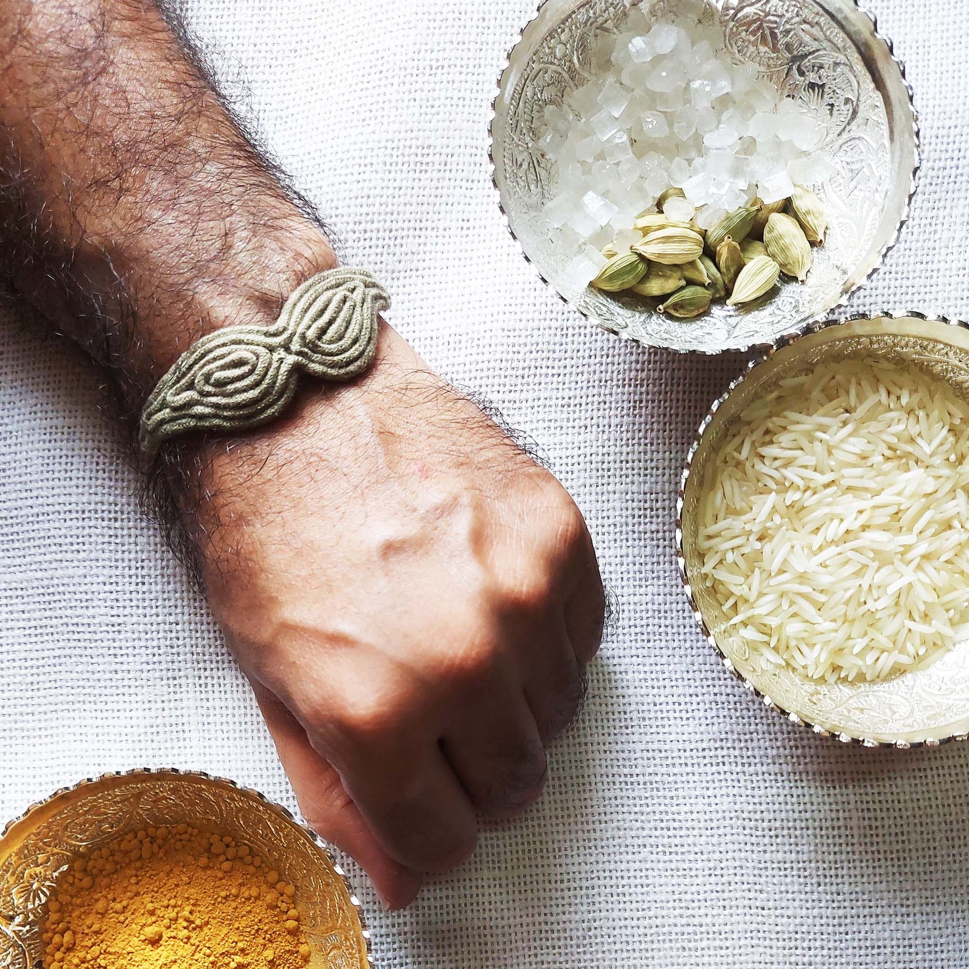 Cotton Dori moustache Rakhi in fawn for your brother to make this festival fun and joyous