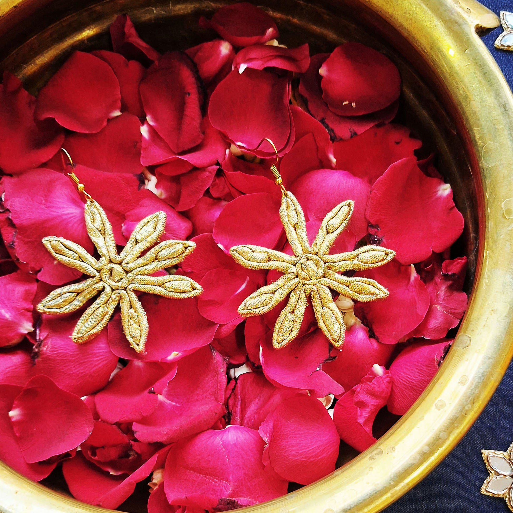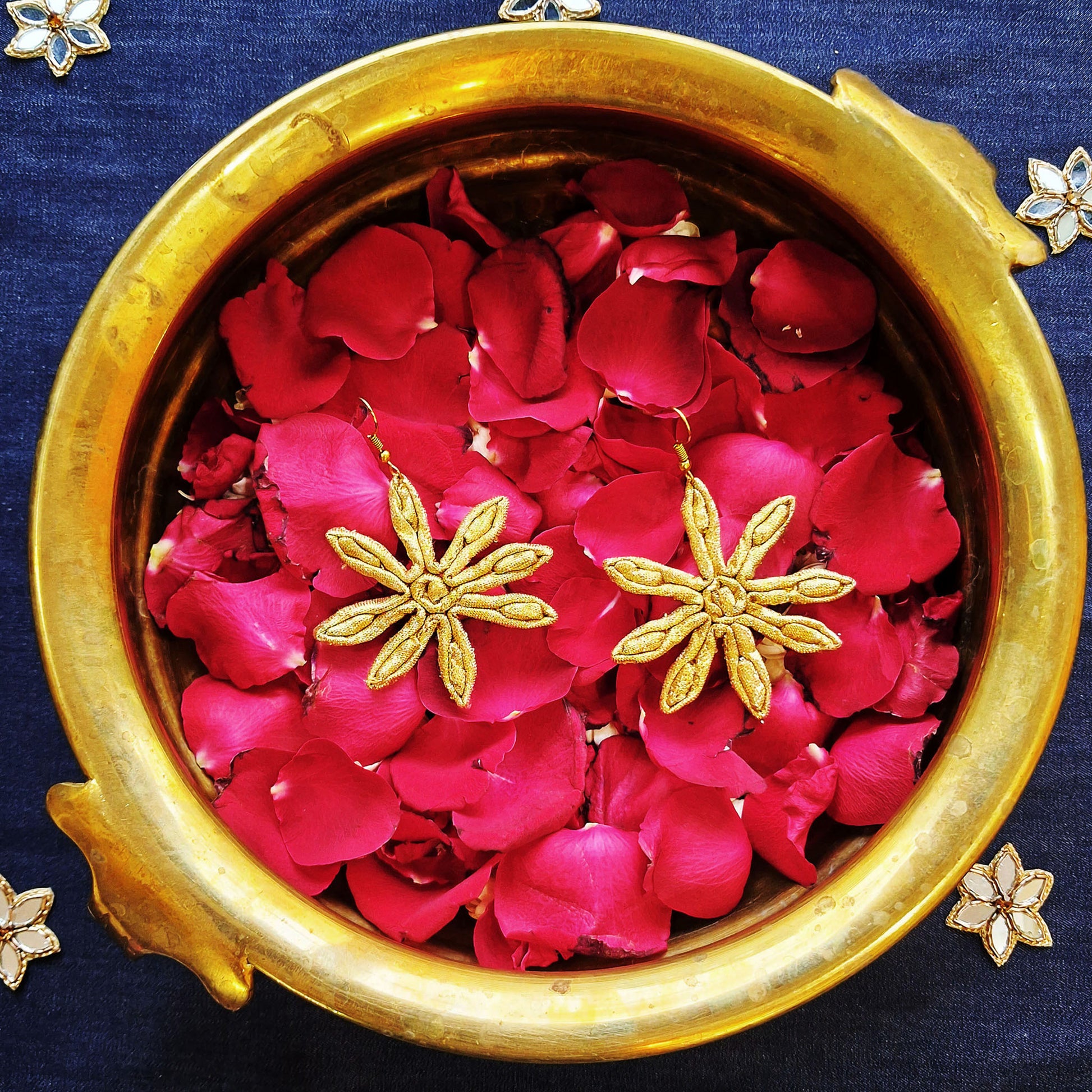 Handcrafted from Gold fabric, these danglers are special and can transport you into the beautiful night sky. These are perfect to flaunt at your festive ocassions and will turn heads wherever you go.
