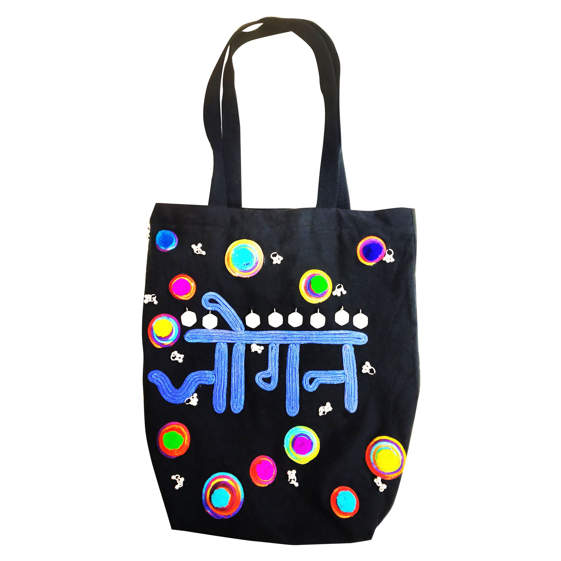 This is a one-of-a-kind artisanal tote bag that you will love. It's not often that you find a bag that is both stylish and sturdy, but this tote bag checks all the boxes. The black canvas fabric is easy to clean and the 'Jogan' embroidery gives it a touch of elegance. With its roomy interior and handy pocket, this tote bag is perfect for everyday use. Whether you're headed to work or out on the town, this bag will keep your essentials safe and stylish.