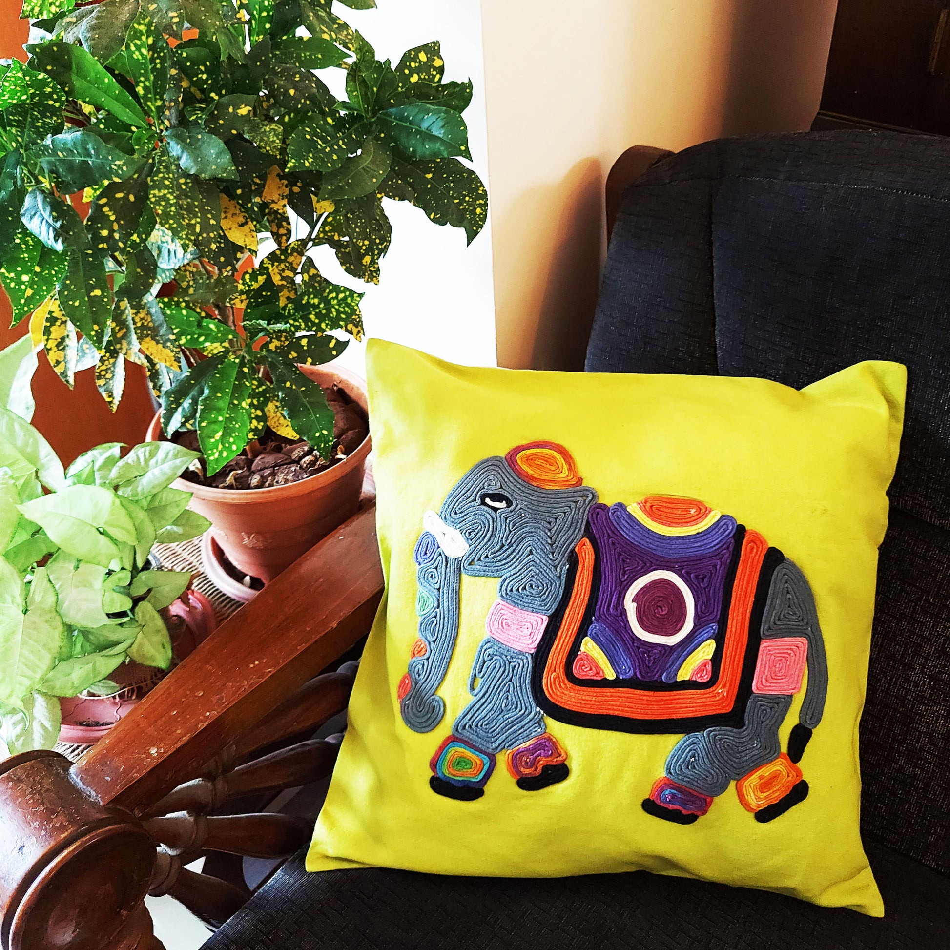 Enhance your room's decor with this eye-catching Lime Elephant Cushion Cover. Featuring a detailed embroidery of an elephant in doriwork on a lime green cotton canvas cover, this cushion cover is sure to brighten up any room. The back of the cushion cover has muslin cloth and a zipper opening, so you can easily insert or remove the stuffing with ease. Add a unique touch to any living area with this beautiful cushion cover and indulge in its softness and beauty.