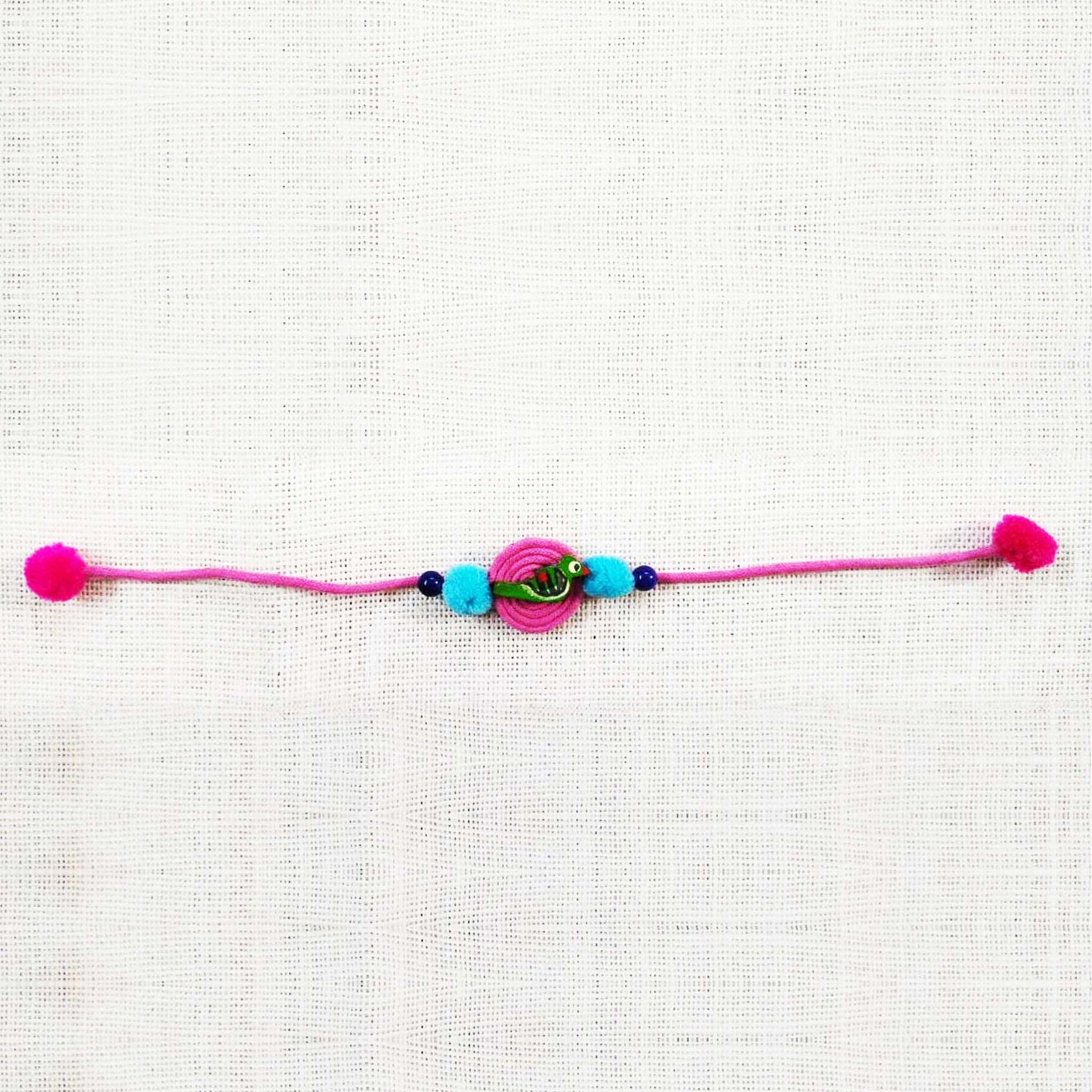 Handcrafted Pink Bird Rakhi using Cotton Dori created for Kids