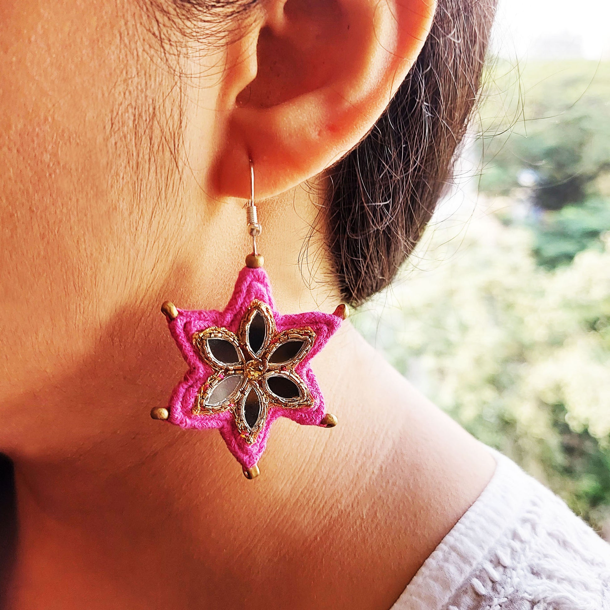Pink Star earrings made in doriwork. Light and easy to carry with any outfit
