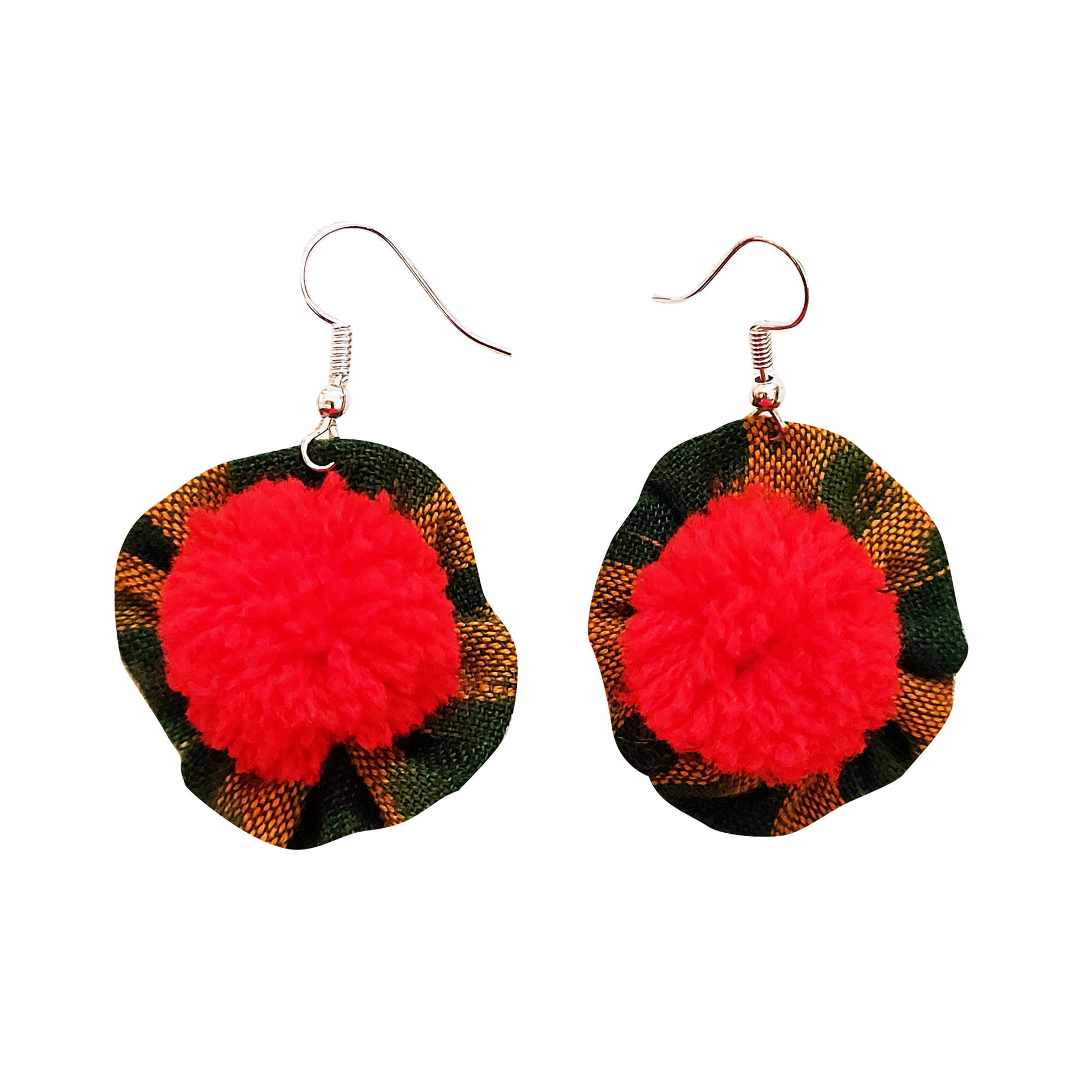 Treat yourself to these statement Vibrant flower earrings! These charming earrings feature a green ikat fabric flower adorned with playful pompoms. They will give your look a hint of boho chic and make the perfect accessory for any outfit. Whether you're headed to work, an event, or going out for brunch, these dainty earrings will brighten up any look. Bring on the compliments - you're sure to wow anyone who sees them.